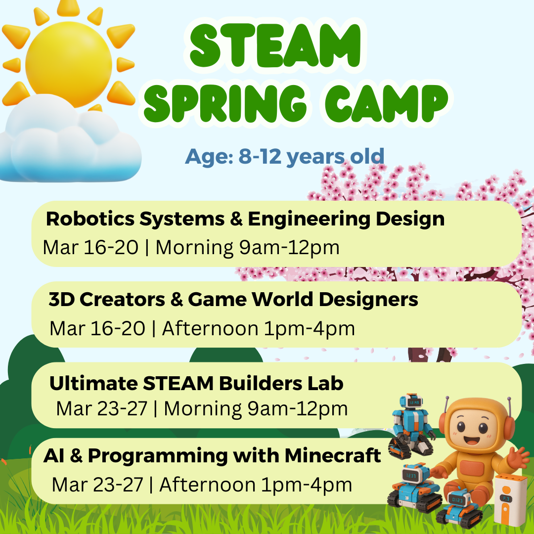 STEAM Spring Camp 2026 Theme: Robotics, Coding, 3D Arts, Engineering, Artificial Intelligence